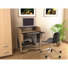 Данная модель пристенного компьютерного стола обладает средними размерами, поэтому она прекрасно впишется в любом помещении. Откидная столешница экономит пространство и закрывает всю оргтехнику когда Вы не работаете за столом, и больше никаких свисающих проводов и нагромождения корпусов техники. Полки под столешницей предназначены для системного блока, принтера, сканера. Имеется так же дополнительная полочка под надстройкой для монитора. Стол мобилен благодаря колесным опорам.