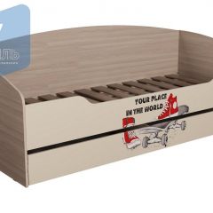 Кровать оснащена выкатным ящиком на колесных опорах. Ящик разделен