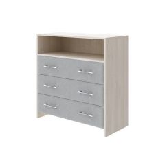 Корпус тумбы выполнен из ламинированных плит ДСП, фасад из плит МДФ, торцы мебели защищены кромкой ПВХ. В качестве покрытия используется высокоглянцевая влагостойкая эмаль, нанесенная в несколько слоев или высококачаственная пленка ПВХ.