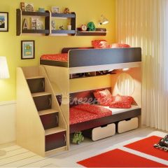 Над нижним спальным местом располагается встроенная трёхсекционная полка, в которой удобно хранить книги, учебники, тетради, канцелярию и другие нужные вещи.