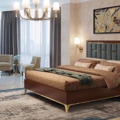 Спальня Sienna - воплощение сдержанной роскоши и богатства. Простота геометрических линий сочетается с натуральным деревом, золотой патиной и обивкой из тканей премиум сегмента