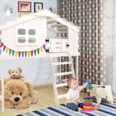 Кровать чердак – это красивое и практичное решения для детской комнаты. Вспомните, как в детстве мы строили дома из стульев и одеяла, мастерили шалаши из веток и возводили башни из подушек. Каждый ребенок мечтает о своем личном пространстве, а еще лучше - целом доме с множеством уникальных фишек. Кровать Чердак - это воплощение детской мечты. Ведь это - полноценный домик с окошком, крышей, дверью и лестницей. Такая кроватка занимает мало места, экономит пространство, и выполняет роль не только спального места, но и рабочей и игровой зоны. Спальное место находиться на верхнем ярусе, а внизу можно оборудовать зону для игр и хранения игрушек, можно поставить детский диванчик или расположить стол и стул для развивающих занятий. Под крышу домика можно повесить фонарики или гирлянду, так вашему ребенку будет не страшно засыпать ночью. А на сам домик заказать деревянные фигурки сказочных животных или имя малыша. А когда у вас появиться второй ребенок, то можно дозаказать нижний ярус и установить дополнительное спальное место.