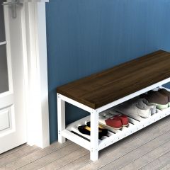Скамья для прихожей в стиле Лофт из натурального дерева с полкой для обуви.