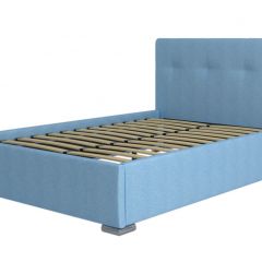 Элегантная интерьерная кровать с мягким изголовьем. Модель изготовлена из ДСП. Обратная сторона изголовья выполнена в основной обивочной ткани по умолчанию. При необходимости кровать может быть укомплектована разборным или неразборным металлическим основанием с ламелями.