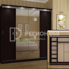 Шкаф-купе Альянс 3 — современный четырехдверный шкаф в стиле минимализма. Шкаф укомплектован зеркалами в полную высоту. Шкаф будет прекрасно смотреться как в прихожей, так и в спальне. Карниз оборудован четырехламповой подсветкой. Внутреннее наполнение шкафа: 2 боковые секции с 5 полками, секция со штангой для платья и полкой для головных уборов.