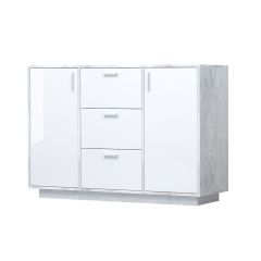 Эго К-2 Комод с 3мя ящ, 2 дв (бетон светлый/белый глянец) цоколь