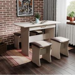 Состав изделий в наборе: Стол - 1шт., Табурет - 4шт.