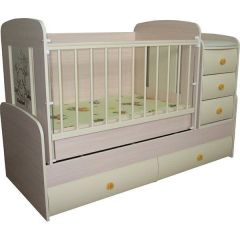 Кровать-трансформер 3 в 1 Multy Vip трансформируется в письменный стол + подростковая кровать + пеленальный столик-комод. Рекомендуется для детей от 0 до 14 лет. У кровати регулируемая боковина, т.е. бортик кроватки подвижен, что облегчает свободный доступ к Малышу. Механизм спуска и подъема с надежной фиксацией. Также у кровати регулируемая высота ложа (2 уровня). Накладки ПВХ предохраняют поверхность кроватки от повреждений и безопасны для Малыша. Маятниковый подшипниковый механизм качания. Прорезиненные ручки с детским рисунком. Детская кроватка Multy Vip изготовлена из экологически чистых материалов (натуральное дерево, ламинированное ДСП, специальные нетоксичные лаки).