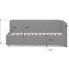 Односпальная кровать в современном стиле. Кровать-софа с одной боковой спинкой. Идеально подходит для квартир с небольшой площадью, детских и подростковых спален, гостевых комнат. Боковую спинку кровати можно изготовить на выбор на правую или левую сторону. Модель изготовлена из ДСП. Дополнительно можно выбрать ортопедическое основание или укомплектовать кровать подъемным механизмом с бельевым ящиком. Каркас основания выполнен из металла, ламели - из берёзы. Данная модель стала героем программы "Квартирный вопрос" на телеканале НТВ. Выпуск можно посмотреть здесь.